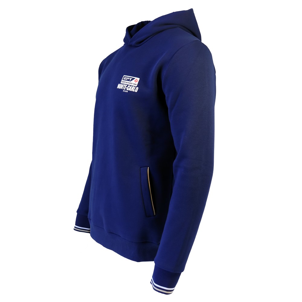 Bring a touch of colour to the tables with our royal blue EPT Monte Carlo 2025 hoodie.Featuring the EPT Monte Carlo logo proudly emblazoned on the left chest, the hoodie also includes a cozy inner fleece fabric for added comfort and warmth.Striped sleeve cuffs provide an added stylish touch, and the hoodie’s lined pockets are ideal for storing valuables – perfect for both relaxing at home and being out and about.