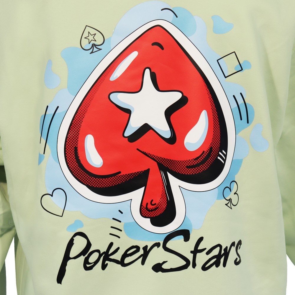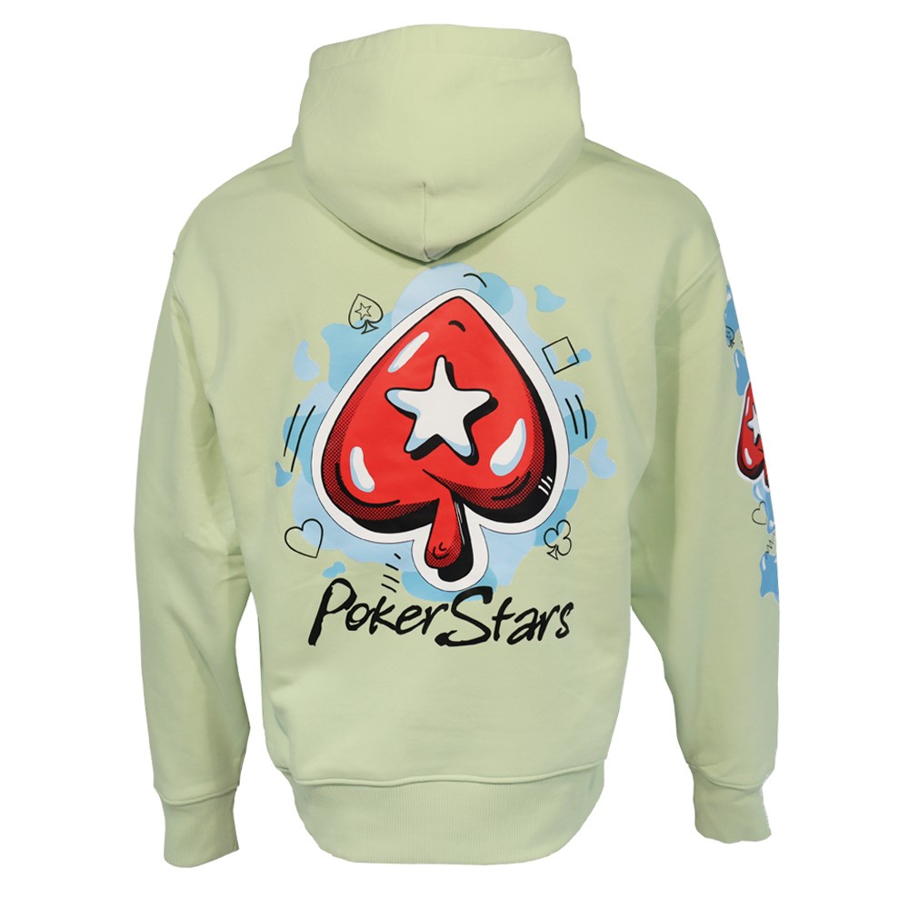 This oversized hoodie brings a graphic novel art style to the iconic PokerStars brand, ensuring you stand out at the tables from the first hand to the last. With the PokerStars logo emblazoned proudly across the back and along the right sleeve for an uncompromisingly different look, this unisex hoodie is made of premium cotton for a softer, more relaxed fit. Also includes set-in sleeve, a double-layered hood and an extra-spacious kangaroo pocket.