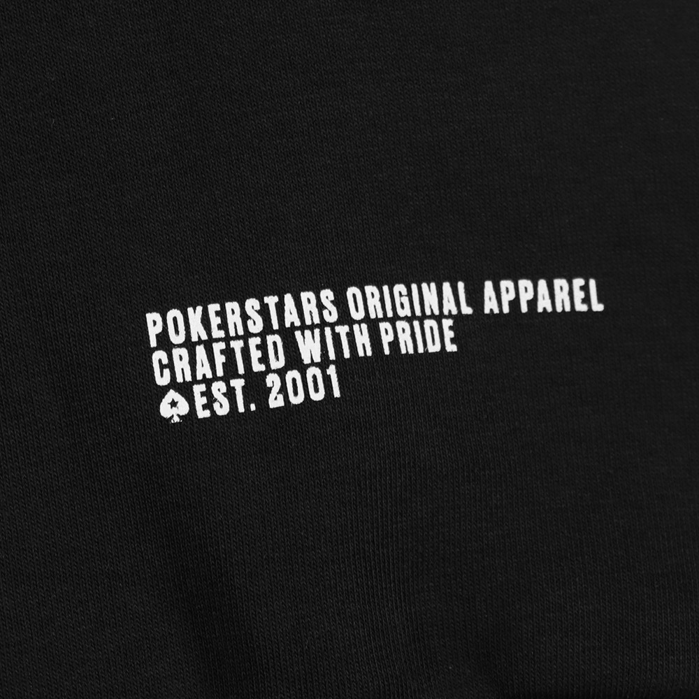 Simple yet stylish, this black hoodie includes PokerStars branding across the left chest, plus red thread on the right side of the hoodie’s pocket and along the back of the hood. Includes a brushed back fabric finish for added comfort, and colour screen prints along the bottom right of the back and inner neck.